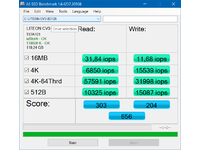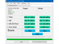 V 15,6“ variantě je možné do počítače vložit M.2 SSD i klasický plotnový disk. V konfiguracích pro ČR je SSD osazeno vždy, zatímco disk je jen někde. Testovaná konfigurace jej má a používá kombinaci 128GB SATA SSD od Liteonu a 1TB pevného disku (WD Green, 5400 rpm). Výkon SSD i plotnového disku v aktuální nabídce představuje ve srovnání s konkurencí slabší průměr, neboť jsou obě zvolená zařízení orientována spíše na nízkou spotřebu.
