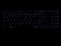 Klávesnice je bíle podsvícená. Podsvícení se zapíná klávesovou zkratkou Fn+F9 a notebook nabízí pouze jednu intenzitu svícení (diody nicméně neblikají vlivem PWM). K prosvítání diod v mezerách mezi klávesami dochází až pod úhlem větším než 45°.