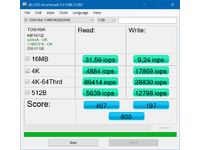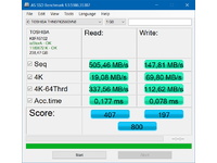 Testovaná konfigurace nabízí kombinaci M.2 SSD 256 GB (TOSHIBA THNSFK256GVN8 ) a 1 TB 2,5" HDD (WDC WD10SPCX-16KHST0) s rychlostí otáčení ploten 5400 ot/m. Oboje vykazuje průměrné rychlosti. SSD už jsme měli v redakci i rychlejší, ale i tak jde stále o výrazně rychlejší práci s daty než u HDD.