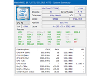 Intel Core i7-7700HQ je hojně používaným procesorem v noteboocích s potřebou vysokého výkonu, a testovali jsme ho již mnohokrát, hlavně v herních noteboocích. Základní takt procesoru je 2,8 GHz, s TurbeoBoostem až 3,8 GHz. Má 4 fyzická a celkem 8 virtuálních jader díky funkci HyperThreading. Intel umožňuje nastavit 35 nebo 45 W TDP, v tomto notebooku jde o vyšší hodnotu. Výkon procesoru více než dostačující pro všechny běžné i náročnější výpočetní operace, jde o vrchol běžné nabídky 7. generace mobilních procesorů Intel. H770 je však mobilní pracovní stanicí, a proto do ní Fujitsu volitelně nabízí i ryze pracovní mobilní procesory Intel Xeon E3 s podporou ECC pamětí.