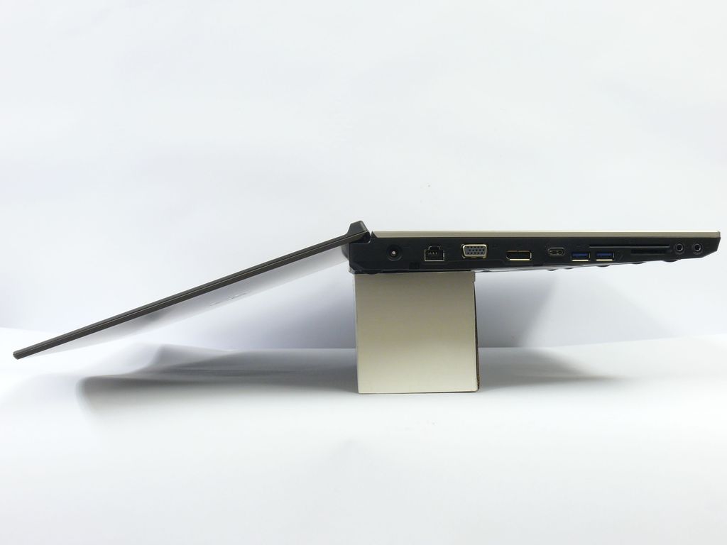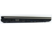 Veškerá rozhraní jsou rozložena na oba boky notebooku. Pravému boku dominuje výše zmíněná multifunkční šachta, blíže k zadnímu rohu je pak 1x USB 2.0 a slot pro Kensingtonský zámek. Na levém boku od předu, jsou 2x audio konektory, čtečky SD a SmartCard, 2x USB 3.0, 1x USB 3.1 / Thunderbolt 3, 1x velký DisplayPort, 1x klasický VGA konektor, 1x LAN RJ-45 a na konci napájecí konektor. Notebook může mít volitelně 3G/LTE modul, slot pro SIM kartu se pak ukrývá pod bateií. Posledním ve výčtu, přesto velmi podstatným, je dokovací konektor na spodku notebooku.