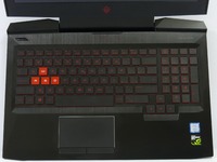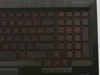 Rozložení klávesnice s numerickým blokem se v zásadě drží zaběhnutých standardů, na psaní je příjemná, ale je zde několik drobných zbytečností, které by bylo fajn dořešit. Nejzvláštnější je široká klávesa zpětného lomítka "\" ve spodní řadě vpravo, kde bych raději viděl klávesy pro vyvolání menu a pravý Ctrl (a vešly by se). Pro editaci textů nebo pohyb v tabulkách je hloupá omezená dostupnost klávesy Home na numerickém bloku (dostupná spolu s klávesou SHIFT, nebo pokud je vypnutý NumLock). U herního notebooku bych uvítal rozdělení funkčních kláves F1 - F12 do bloků po čtyřech. Osobně také preferuji velký dvouřádkový Enter. Pochválit lze zřetelné oddělení skupinky šipek, i když pohodlnost jejich použití v kombinaci s vysokou čelní hranou je různá podle velikosti ruky uživatele.