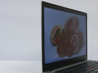 14,0“ displej může mít v závislosti na konfiguraci rozlišení full-HD (1920x1080) nebo WQHD (2560x1440). Full-HD varianta navíc může být dotyková. V testované konfiguraci je osazen matný nedotykový displej od AUO s rozlišením full-HD. Jde o typ AHVA, tedy obdobu IPS, která se vyznačuje dobrými pozorovacími úhly a vyšším kontrastem ve srovnání s TN. Jedinou nevýhodou použitého displeje je posun bílé barvy do žluté, který nemusí být příjemný při kancelářské práci přes den. Částečným řešením barevného vychýlení může být snížení jasu zelené a červené složky na -12 v ovládacím panelu integrované grafiky.