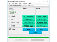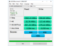 - HD Tach (měření průměrné přenosové rychlosti při čtení): 552,4 MB/s
