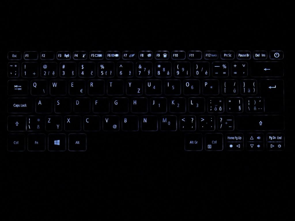 Rozložení kláves se blíží většinovému notebookovému standardu, takže mi i zde vadí většinová absence mezer mezi skupinkami kláves F1 - F12, ty fungují standardně a speciální funkce na nich s klávesou Fn. Společně s klávesou Fn lze také vyvolat kontextovou nabídku umístěnou na pravém Ctrl a Ins umístěný na klávese s primárním Del. Poloha klávesy Del bohužel ustoupila módnímu trendu umístění napájecího tlačítka jako klávesy do klávesnice, aspoň že je při provozu zhasnutá, svítí jen když je zapnuté podsvícení celé klávesnice.