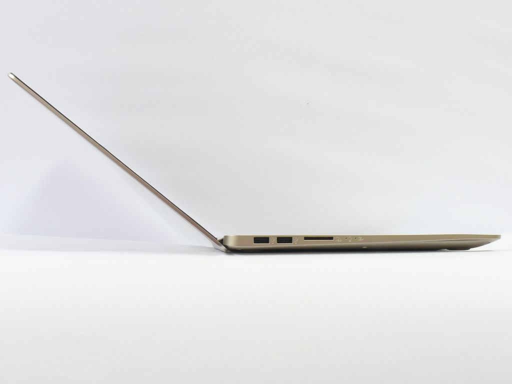 Výbava portů je dle mého soudu dostatečná a odpovídající kategorii notebooku. Všechna rozhraní jsou umístěna na boky, více dozadu, ergonomicky optimální řešení. Vlevo odzadu je 2x USB 2.0 a čtečka SD karet. Druhý bok začíná konektorem napájení, následují 1x USB 3.0, velké HDMI, USB-C 3.1 a 1x duální audio jack.