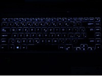 Bílé popisky na černých klávesách jsou dobře čitelné i za mírného šera. Klávesnice má 3 stupně podsvícení, a funguje na všechny znaky i symboly. Ve tmě bohatě stačí 1. stupeň, na 3. stupeň je pak čitelnost perfektně ostrá.