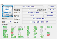Notebook je postaven na poslední generaci úsporných procesorů Intel (15W TDP). V testované konfiguraci je výkonnější čtyřjádrová varianta Intel Core i7-8550U s výchozím taktem 1,8 GHz a režimem TurboBoost až do 4 GHz. Další podrobnosti o chování procesoru se dočtete níže, v části recenze "Chlazení a provozní hluk".