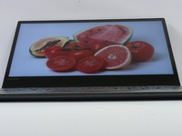 Lesklý povrch displeje, logicky více než matný, odráží objekty v okolí. Odměnou za lesklý povrch je dojem sytějšího podání barev. 4K UHD rozlišení je u 13,3" notebooku dle mého soudu věcí luxusu, většina uživatelů si zcela jistě nechá z výroby nastavené větší fonty (funkce Windows). Jemnost zobrazení ocení "fajnšmekr" spíše u fotek, pro práci by stačilo i FullHD. Sklo na vnitřní straně víka dosahuje téměř až k okraji (cca 1 mm) boků a horní hrany, dolní hrana skla končí vykrojením pro panty. Notebook díky sklu až do okrajů vypadá elegantněji a zároveň zvyšuje pevnost víka. LCD nese označení AUO B133ZAN01.1, nabízí IPS technologii a podsvícení bez PWM blikání. Jas, kontrast i podání barev je na slušné úrovni, jen při otevření bílého okna přes celou obrazovku, pozoroval kolega mírně žlutější odstín na levé straně, mohlo by jít o vadu kusu, při běžné práci si toho všimne málo kdo.