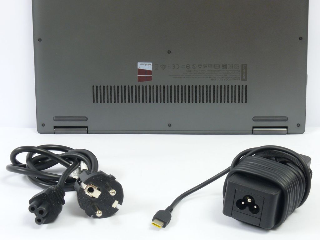 Napájecí zdroj s rozměry 103 x 40 x 29 mm a vahou 288 g včetně kabelu je malý, lehký a skladný. Notebook napájí prostřednictvím USB-C konektoru.
