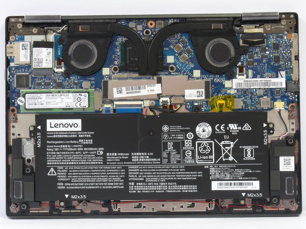 Notebook v sobě ukrývá dva malé a tenké větráky. Každý větrák má vlastní cirkulaci tepla propojenou s chladičem přiloženým k procesoru. Chlazení by mělo jít poměrně snadno rozebrat, vyčistit a "přepastovat" spojení chladiče s procesorem (pro pokročilejší uživatele).